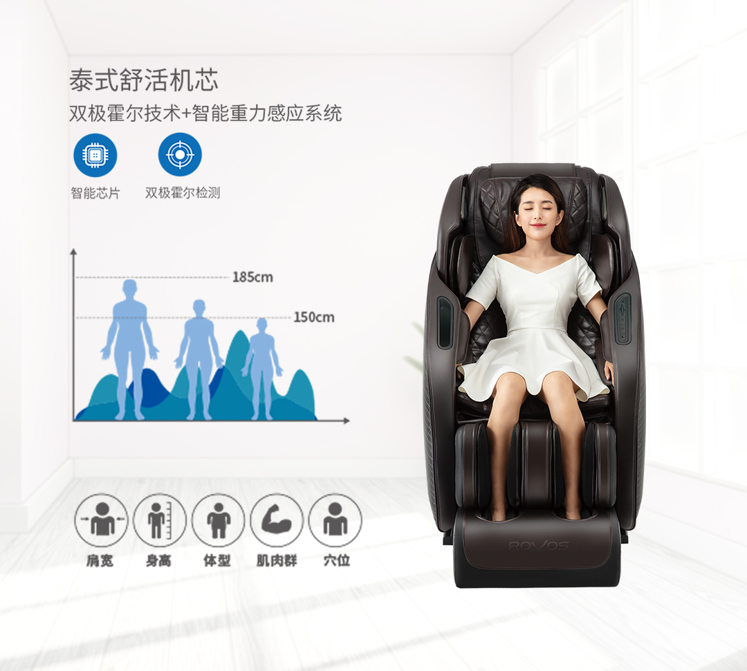 ◆泰式舒活机芯通过双极霍尔技术和零重力感应系统,能够根据身体每个部位的重力反馈识别,输出精准舒适按摩程序。