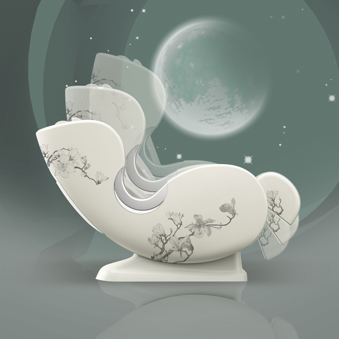 现代都市人忙于生活,常常忘记抬头看看月亮,疲惫的侵袭也提醒人们向内关注身体觉知。设计师希望通过月亮放松轻盈的特质让用户肆意卧躺拥有月亮,感受美好温馨的按摩时光,配合云感气囊,绝美音乐,漂浮云端享受月亮摇椅的智慧按摩生活。