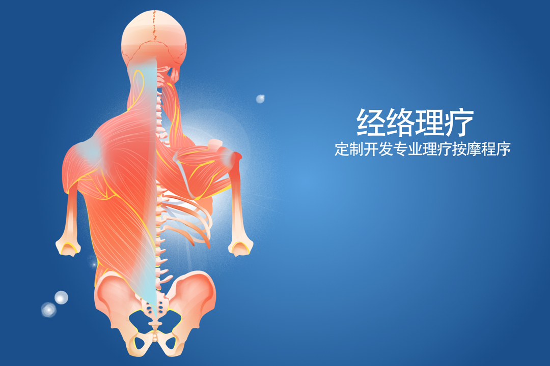 经络理疗按摩程序,是对人体三大重点区域(肩颈、胸背、腰部)的肌肉和穴位进行按摩,其按摩手法更加符合力学轨迹,对易劳损肌肉群的整个肌纤维进行推拿、揉捏、刮痧梳理等,实现疏通经络,调整机能。