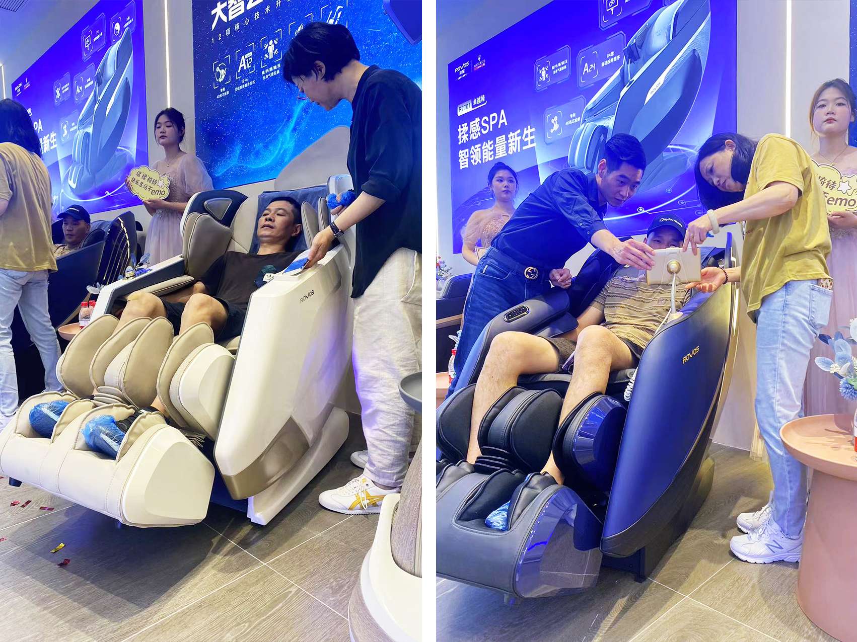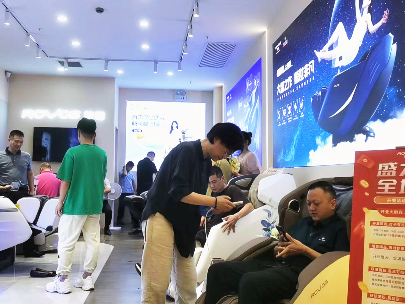 开业当日进店体验的用户络绎不绝,店内设置了多重开业福利,进店即可领取精美礼品的福利活动,让新门店成为很多消费者前往打卡的热门地点。此次门店采用了“科技+家”的品牌概念,整体以时尚轻奢、智能疗愈、温暖居家等品牌调性打造,采用了品牌色“长春花蓝”为点缀色,结合灯光、绿植等整体氛围营造,为每个进店体验的客户带来全感官按摩享受。